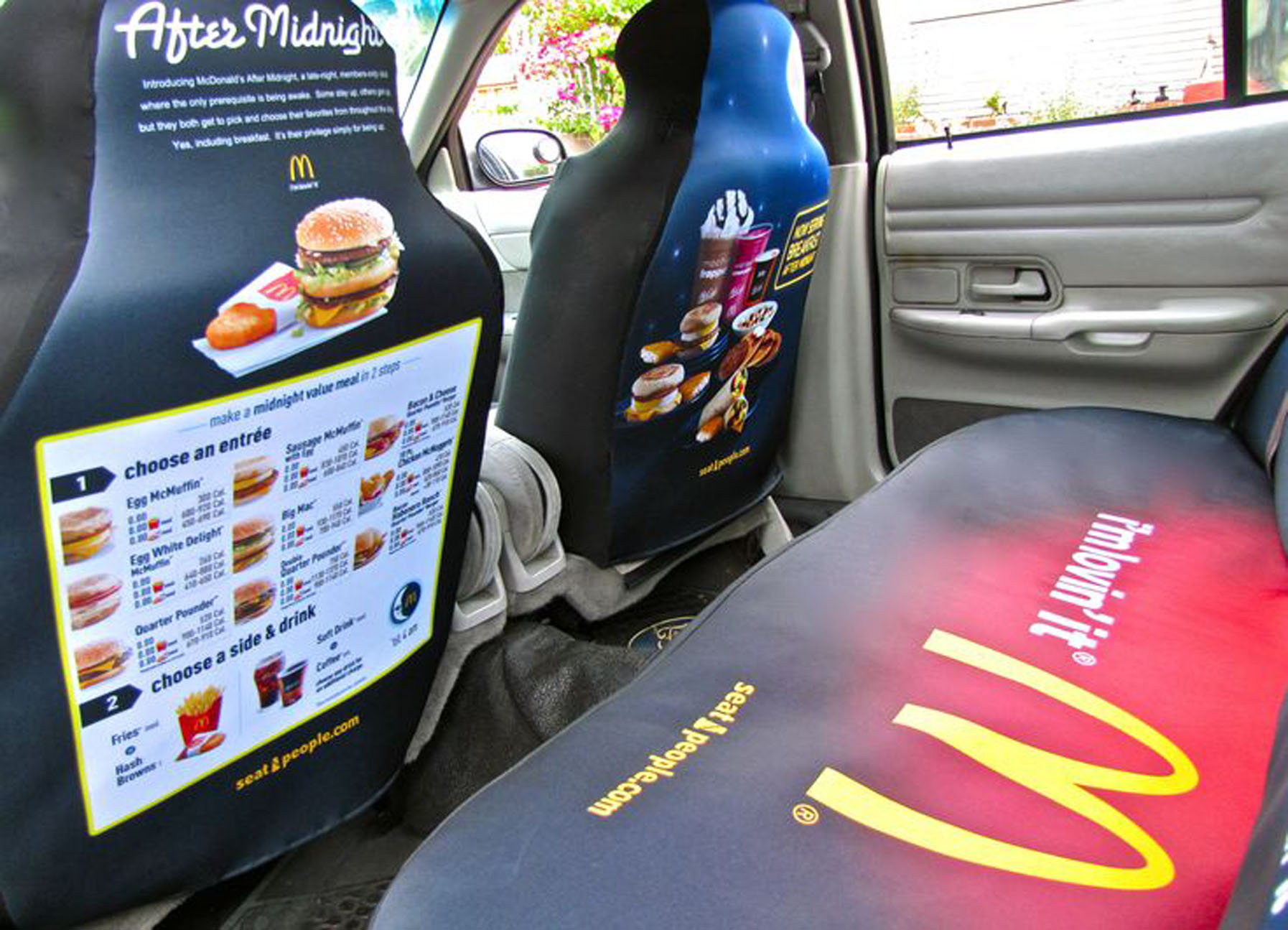 Реклама на подголовниках в такси на фото выше